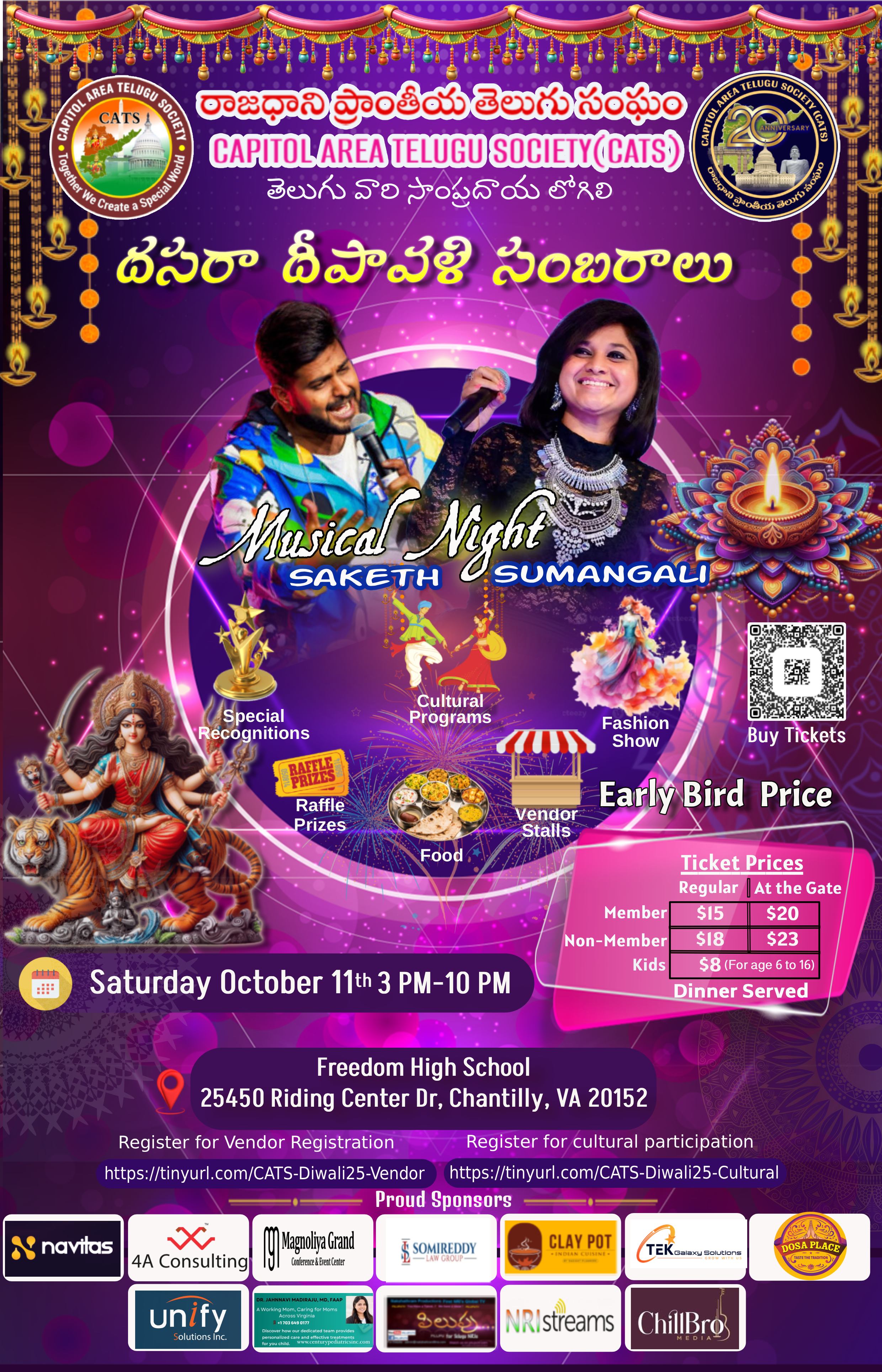Capital Area Telugu Society (CATS) is a non-profit organization that serves the Telugu community in the Washington DC metro area, which includes Northern Virginia and Maryland